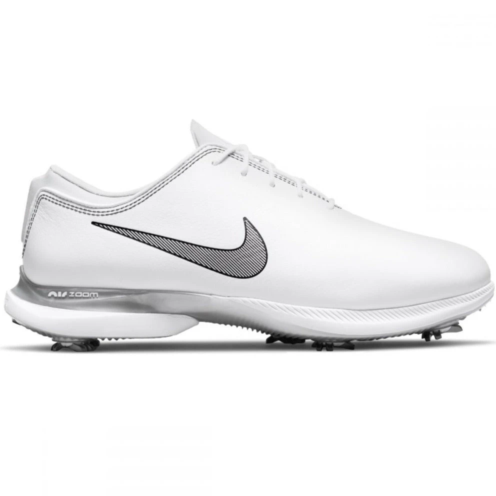 Accurate to its predecessor, the Nike Air Zoom Victory Tour 2 Golf Shoes delivers modern technology in a classic silhouette. Upgraded for the new season these shoes pair supple, sophisticated leather with performance technology like Zoom Air and exceptional traction—resultingin you playing your best golf. The hybrid outsole utilises 7 removable spikes for optimal grip in all conditions. The full grain leather offers a sotylish look while simultaneously shielding your feet from wet weather, topped with a 2-year waterproof warranty for peace of mind while your on the course.